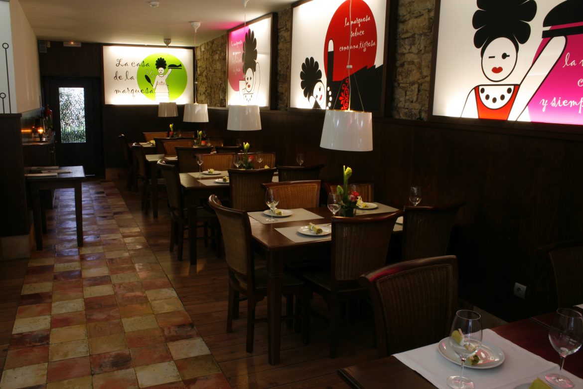 La Casa de la Marquesa apuesta por ser un lugar diferenciado. Su decoración permanece entre lo sobrio y lo chic, revestido de madera casi hasta el techo y con poca pero amplias mesas. Los ornamentos concluyen con ilustraciones minimal pop.