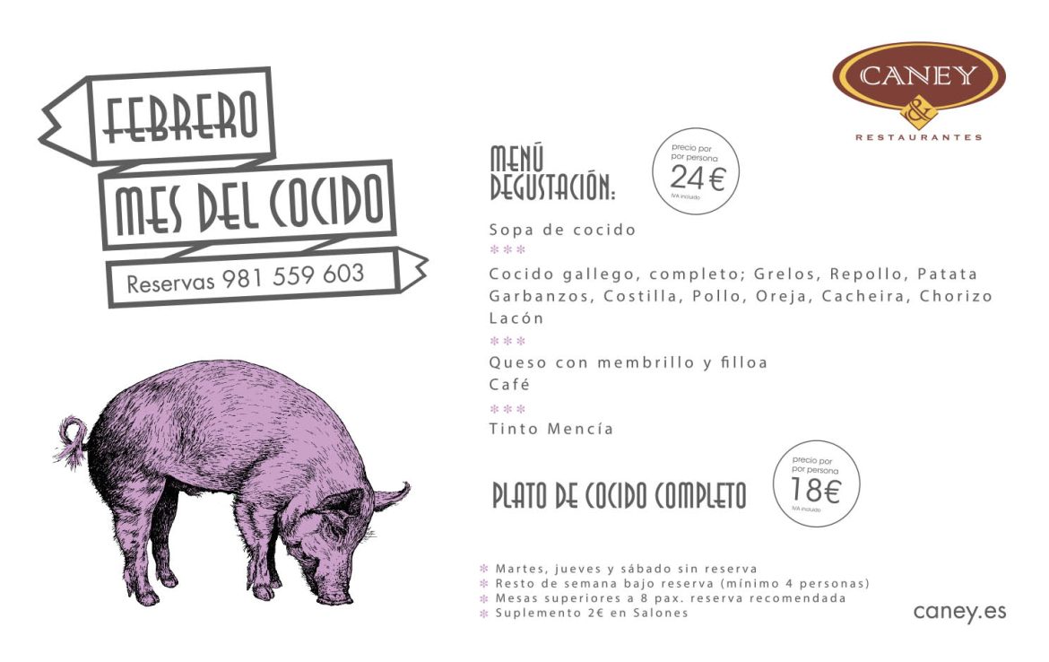 Con el mes de febrero llega al restaurante Caney de Compostela el tradicional menú, a base de cocido gallego, que se compone de “cacheira”, lacón, jarrete de ternera gallega, grelos de Sigüeiro, patatas de Coristanco, chorizos de Lalín, repollo del país.