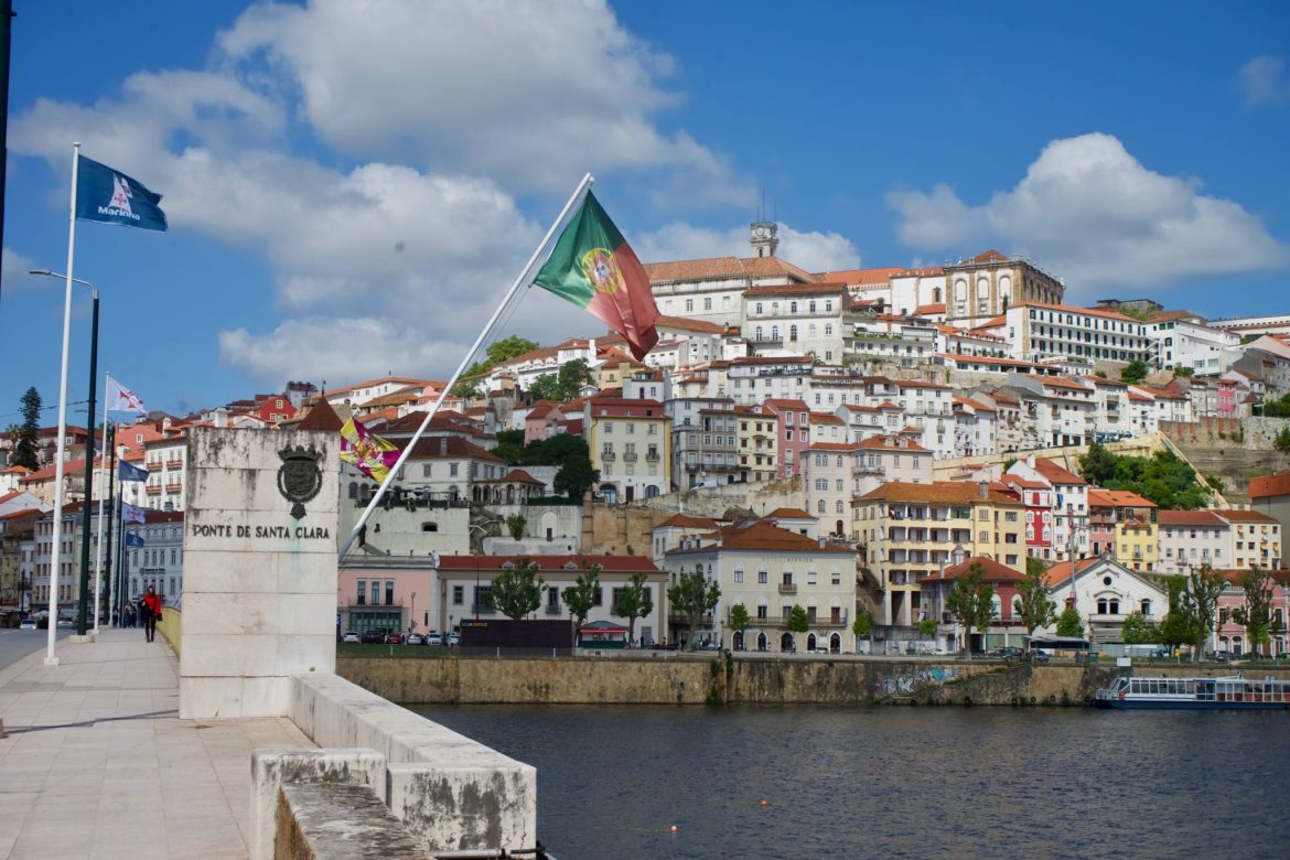 Renuncié a la lavandería y acabé sentado en una terraza sobre el río Mondego y el puente de Santa Clara, en un local que se llama Passaporte, donde ahora estoy bebiendo algo mientras la ropa sucia está en una bolsa a mi lado.